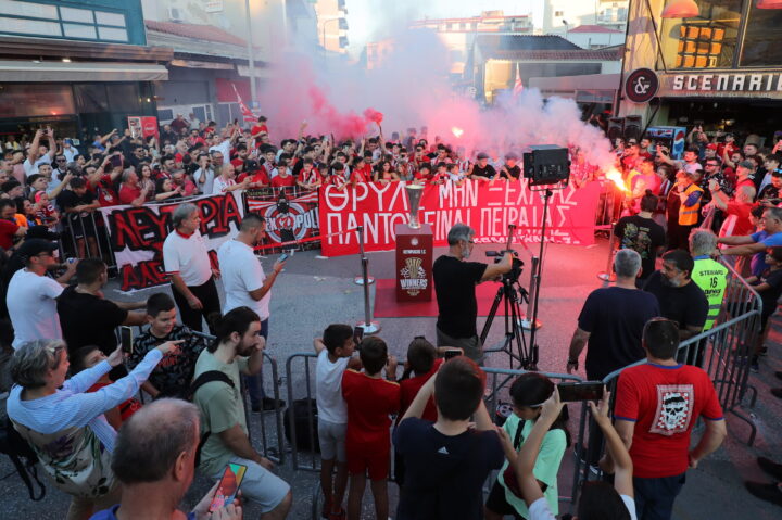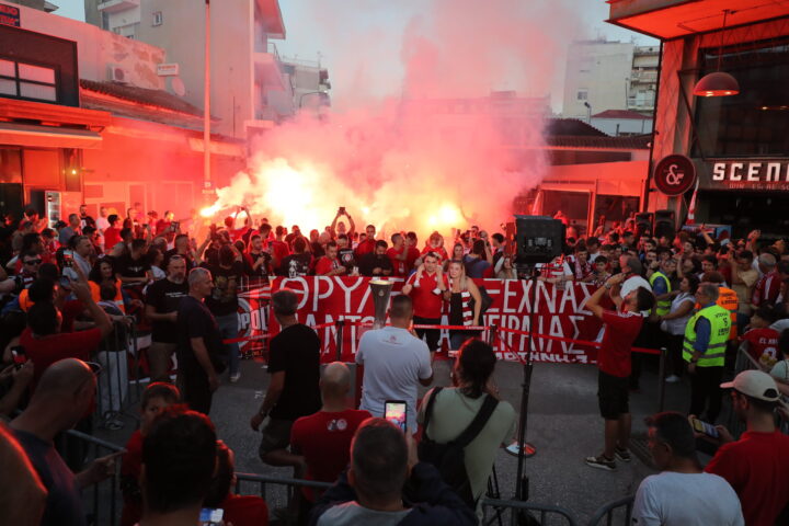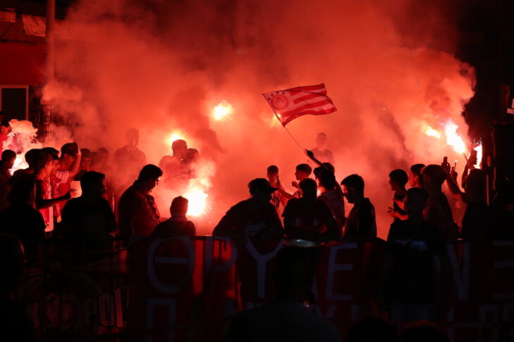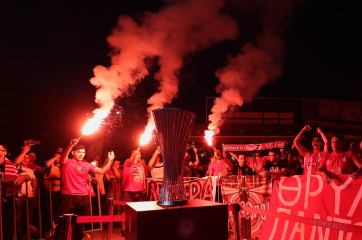 Χιλιάδες οπαδοί του Ολυμπιακού δημιούργησαν πολύ όμορφη ατμόσφαιρα στην Κομοτηνή για την… υποδοχή της κούπας του Conference League.