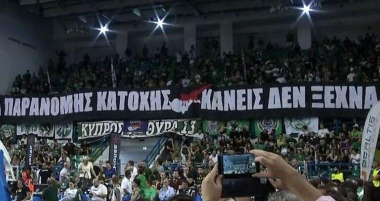 Ο Παναθηναϊκός ολοκλήρωσε την παρουσία του στο τουρνουά «Νεόφυτος Χανδριώτης» μετά την ήττα από τη Μακάμπι Τελ Αβίβ σε φιλικό παιχνίδι. Οι Κύπριοι φίλοι της ομάδας γέμισαν το κλειστό «Τάσος Παπαδόπουλος – Ελευθερία» και φρόντισαν να στείλουν μήνυμα για την τούρκικη εισβολή. Το πανό που σήκωσαν και αποτυπώθηκε και στον τηλεοπτικό φακό στην 4η περίοδο, … Συνεχίστε να διαβάζετε το Παναθηναϊκός: Το πανό των Κύπριων οπαδών του για την τούρκικη εισβολή με το μήνυμα «κανείς δεν ξεχνά» (vid).