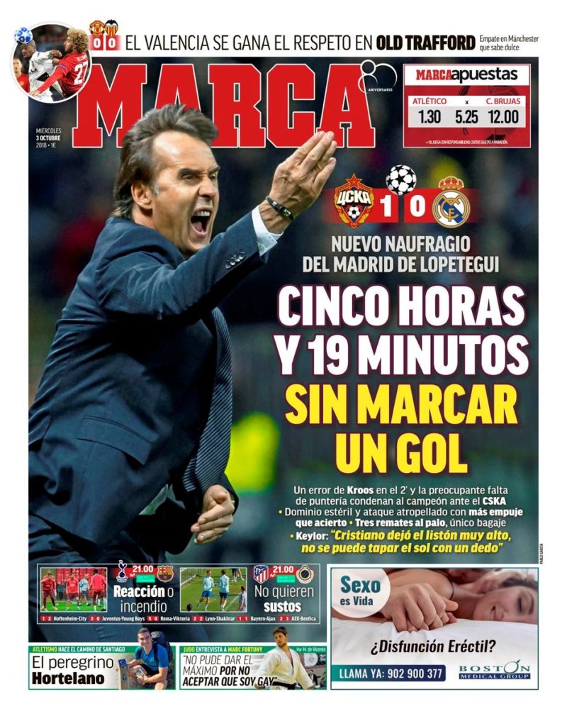 MARCA: «Νέο ναυάγιο της Ρεάλ του Λοπετέγκι – Πέντε ώρες και 19 λεπτά χωρίς να πετύχει γκολ».