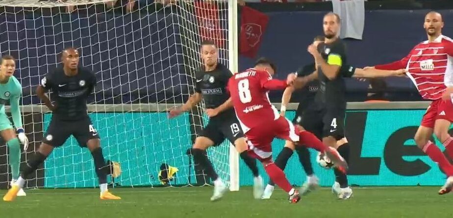 Βέβαια πριν το φινάλε του ημιχρόνου η πιο έμπειρη Στουρμ ισοφάρισε με αυτογκόλ του Φερνάντες για να πάνε οι δύο ομάδες στα αποδυτήρια με το σκορ στο 1-1.