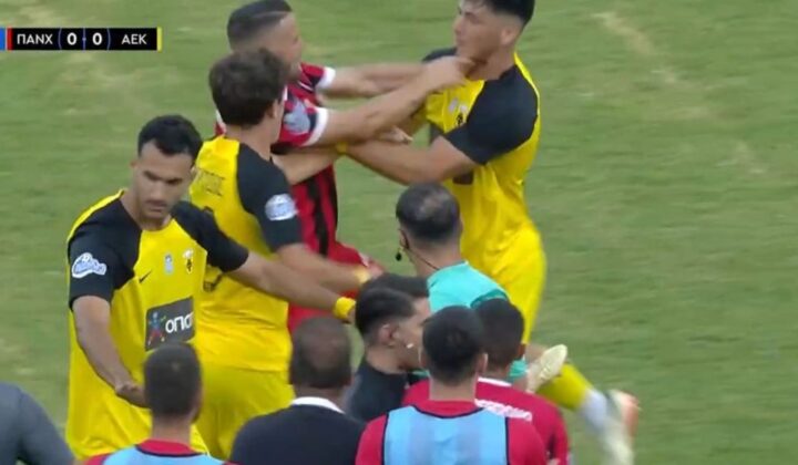 Αυτή ήταν η αιτία που άναψαν τα αίματα καθώς ο ποδοσφαιριστής της Παναχαϊκής, Καραγιάννης, που βρισκόταν μακριά από τη φάση έτρεξε προς τον Κωσίδη εκνευρισμένος με την αντίδραση του και προσπάθησε να τον πιάσει από τον λαιμό.
