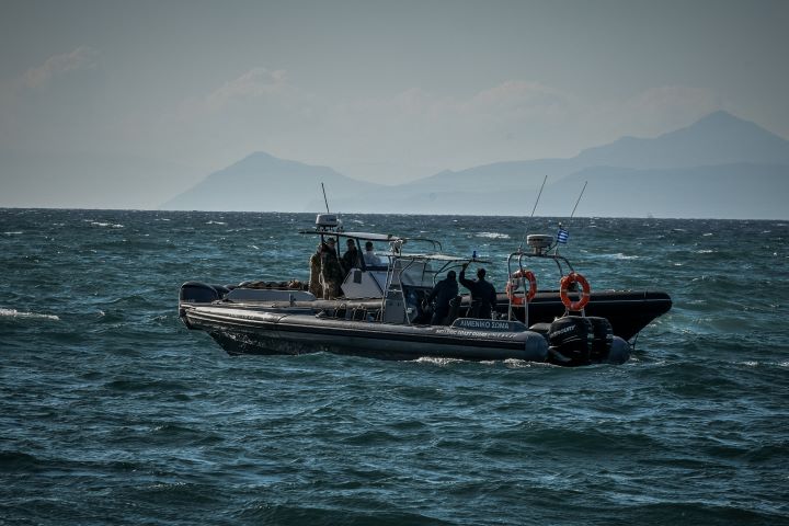 Στην περιοχή πνέουν άνεμοι ΒΔ 5-6 μποφόρ. Επίσης, αστυνομικοί «χτενίζουν» την ευρύτερη χερσαία περιοχή.
