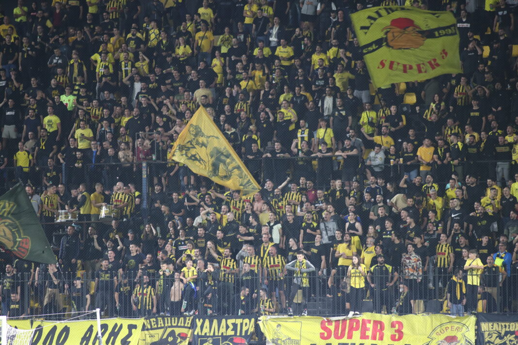 Χειροπέδες σε έναν 55χρονο από το προσωπικό ασφαλείας στο γήπεδο «Κλεάνθης Βικελίδης», στη Θεσσαλονίκη, προχώρησαν χθες αστυνομικοί κατά την αναμέτρηση του Άρη με τη Λαμία.