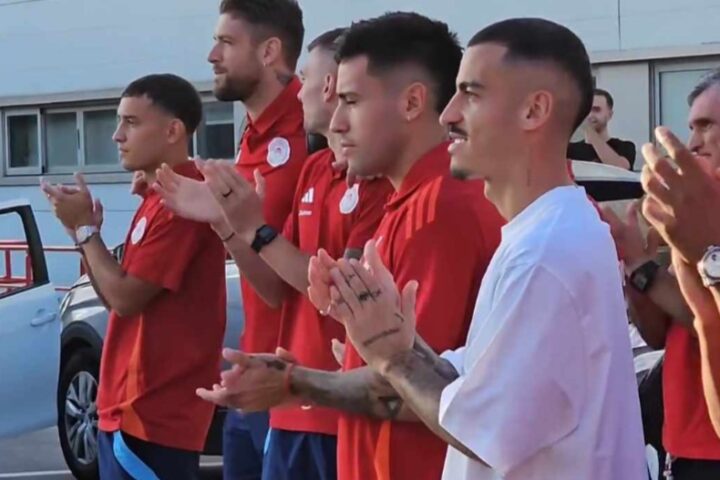 Την αποθέωση από τον κόσμο γνώρισαν οι ποδοσφαιριστές του Ολυμπιακού λίγο πριν την αναχώρηση για το ΟΑΚΑ και το ντέρμπι με τον Παναθηναϊκό (20:30).