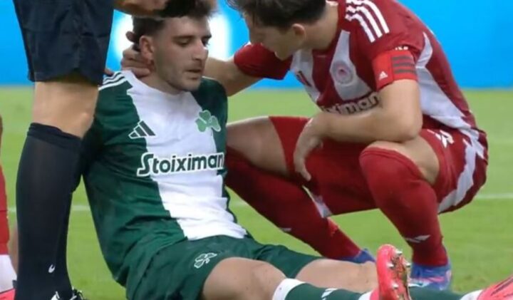 Ο επιθετικός των Πράσινων έπεσε στο χορτάρι στο 44ο λεπτό, έβγαλε το περιβραχιόνιο για να το δώσει στον Μπακασέτα και έκανε νόημα για αναγκαστική αλλαγή, δείχνοντας πως αντιμετωπίζει πρόβλημα στον προσαγωγό. Ο Άντραζ Σπόραρ πέρασε στη θέση του και ο Έλληνας επιθετικός έφυγε για τα αποδυτήρια προκειμένου να γίνει μια πρώτη εκτίμηση της κατάστασής του.