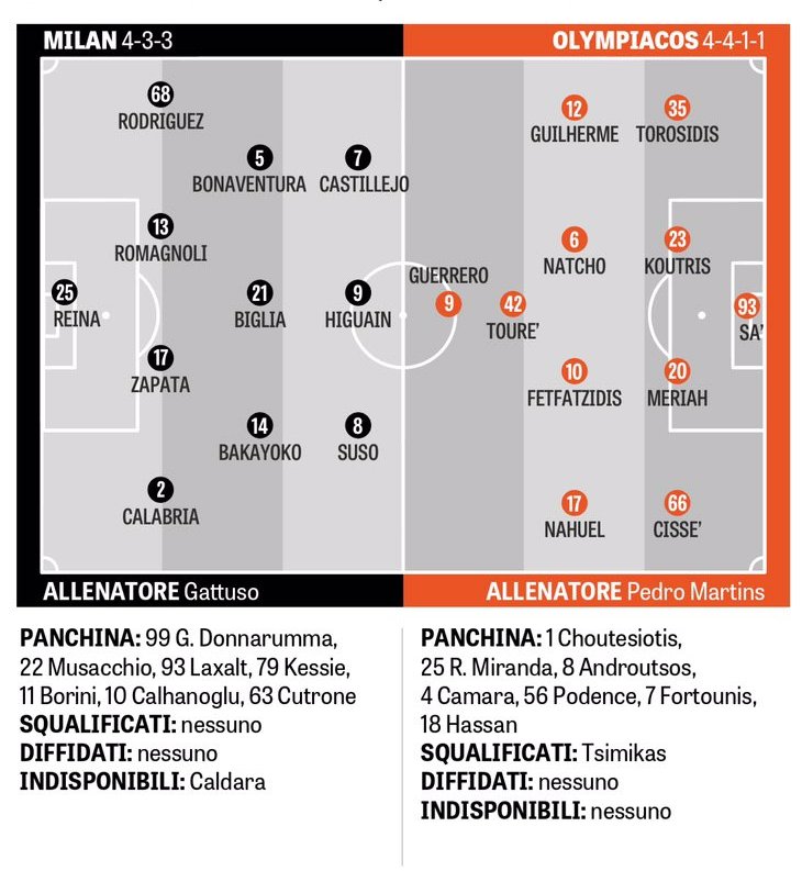 Σύμφωνα με σημερινό ιταλικό δημοσίευμα οι αρχικές ενδεκάδες των δύο ομάδων θα είναι οι εξής: