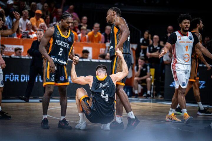 Ο Προμηθέας είχε τον έλεγχο του αγώνα από τα πρώτα λεπτά, κατάφερε να ξεφύγει ακόμη και με 17 πόντους στην εκκίνηση της δεύτερης περιόδου (16-33), αλλά μία χαλάρωση στο αμυντικό κομμάτι επέτρεψε στη γερμανική ομάδα να όχι μόνο να ροκανίσει τη διαφορά, αλλά και να προσπεράσει με 81-78 στο 36΄.