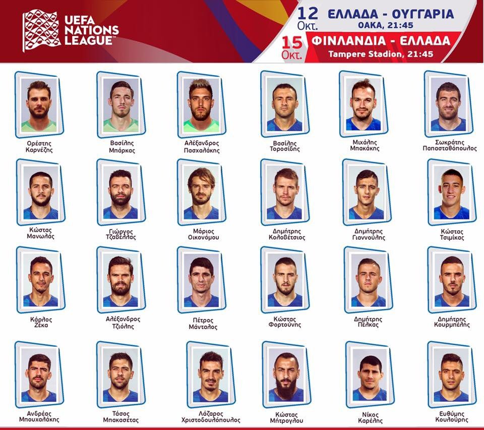 Στην αποστολή συμπεριλαμβάνονται για πρώτη φορά ο αριστερός μπακ του Ολυμπιακού, Κώστας Τσιμίκας αλλά και ο τερματοφύλακας του ΠΑΟΚ Αλέξανδρος Πασχαλάκης. Πρώτη και για τον Δημήτρη Γιαννούλη που αγωνίζεται στον Ατρόμητο.