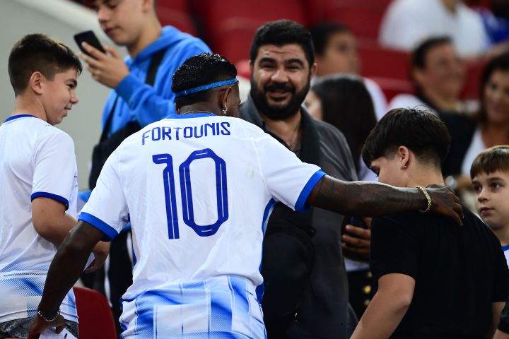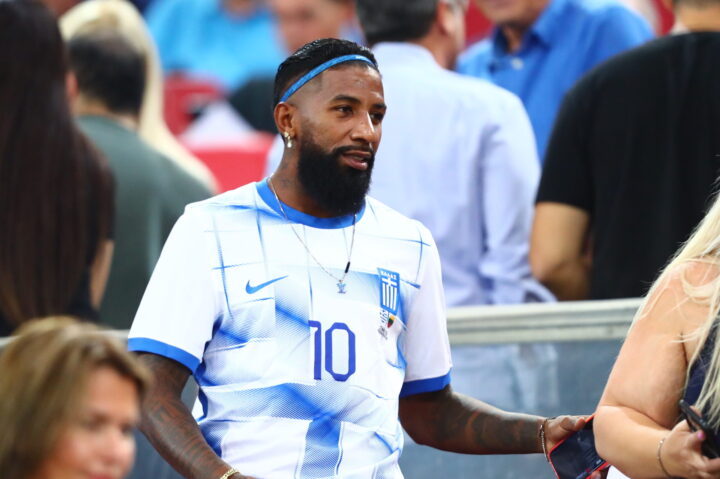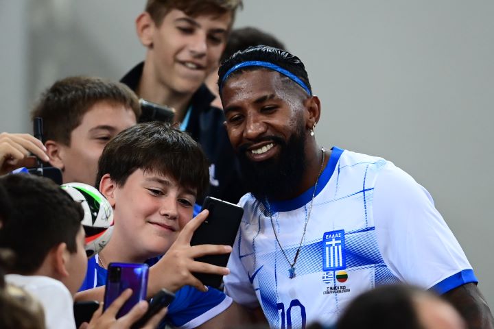 Σήμερα (13/10) βρίσκεται στο «Γ. Καραϊσκάκης» και παρακολουθεί από κοντά την αναμέτρηση της Ελλάδας με την Ιρλανδία για την 4η αγωνιστική του Nations League. Μάλιστα φοράει φανέλα της εθνικής και συγκεκριμένα του πρώην συμπαίκτη του στους Ερυθρόλευκους, Κώστα Φορτούνη.