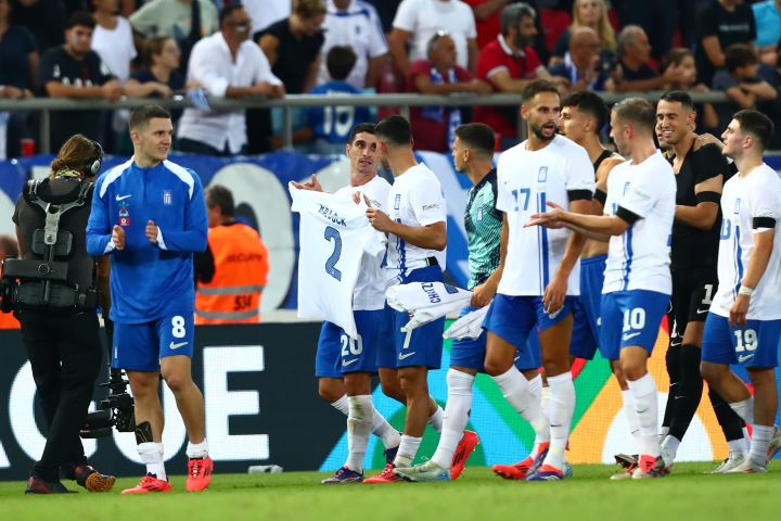 Μετά το ματς οι Έλληνες διεθνείς έκαναν τον γύρο του θριάμβου κρατώντας στα χέρια τους μια φανέλα του αδικοχαμένου συμπαίκτη τους και αποθεώθηκαν από τον κόσμο.