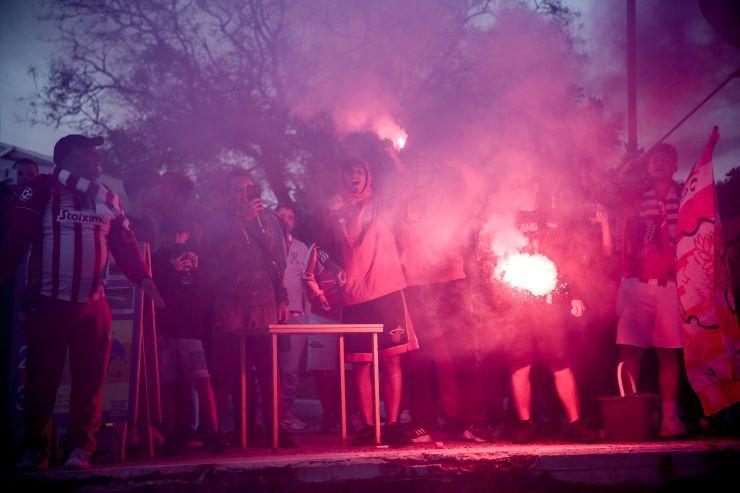 Οι κούπες του Conference και του Youth League εκτέθηκαν για τον κόσμο που ήθελε να τις θαυμάσει και να βγάλει φωτογραφίες με αυτές. Τα καπνογόνα και τα συνθήματα δεν έλειψαν από το ερυθρόλευκο πάρτι ενώ αρκετοί οπαδοί του Ολυμπιακού έβγαλαν την κάρτα Μέλους για να δυναμώσουν τα τμήματα του Ερασιτέχνη που και την ιστορική σεζόν των 100 ετών όπου οι Ερυθρόλευκοι θέλουν να πανηγυρίσουν τίτλους παντού.