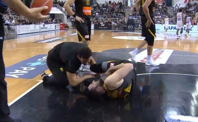 Ο παίκτης της Ένωσης έπεσε άτσαλα στο παρκέ και χτύπησε στον αστράγαλο του στις αρχές του δευτέρου δεκαλέπτου της αναμέτρησης με τον ΠΑΟΚ, με αποτέλεσμα να αποχωρήσει υποβασταζόμενος από το παρκέ.