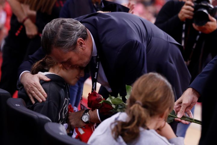 Σήμερα πριν την έναρξη της αναμέτρησης του Ολυμπιακού με την Μπαρτσελόνα στο ΣΕΦ, άνθρωποι της ομάδας άφησαν λουλούδια στη θέση που συνήθιζε να κάθεται.