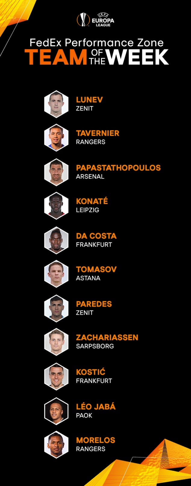 Δύο… Έλληνες βρίσκονται στην κορυφαία ενδεκάδα της 2ης αγωνιστικής του Europa League. Ο λόγος για τον Παπασταθόπουλο και τον Ζαμπά, όπου έκαστος σκόραρε με την ομάδα του και συνεισέφερε τα μέγιστα για τη νίκη.