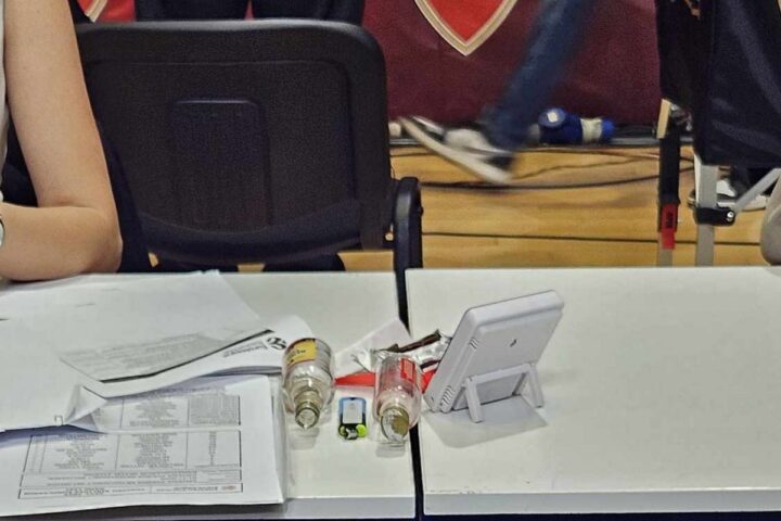 Ο Παναθηναϊκός καταγγέλλει εκτόξευση αναπτήρων και μπουκαλιών στον πάγκο του από οπαδούς του Ερυθρού Αστέρα λίγο μετά τη λήξη του πρώτου ημιχρόνου στην κατάμεστη Χάλα Πιονίρ.