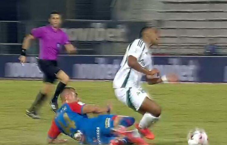 Ο Κύπριος στόπερ γκρέμισε τον Τετέ εκτός περιοχής ενώ ο Βραζιλιάνος έφευγε απέναντι από τον Κόβατς και αντίκρισε την απευθείας κόκκινη κάρτα από τον Ευαγγέλου.