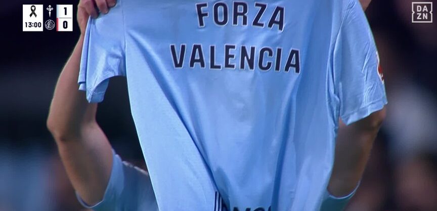 Ο Έλληνας διεθνής στράικερ θέλησε με αυτή του την κίνηση να αφιερώσει το τέρμα του σε όσους έχασαν τους ανθρώπους τους ή δοκιμάζονται από τις φονικές πλημμύρες της κακοκαιρίας «DΑΝΑ» στην ισπανική πόλη, κάτι που συγκίνησε αρκετούς στην Ισπανία.