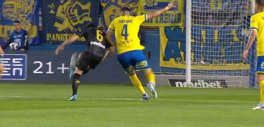 Συγκεκριμένα μετά από εκτέλεση κόρνερ του Τορεχόν ο ανενόχλητος Παντελάκης πήρε την κεφαλιά περίπου από το σημείο του πέναλτι και άνοιξε το σκορ για την ομάδα του Πετράκη καθώς ο Σίντκλεφ που κάνει ντεμπούτο με τη φανέλα των Θεσσαλονικέων δεν μπόρεσε να κάνει κάτι.