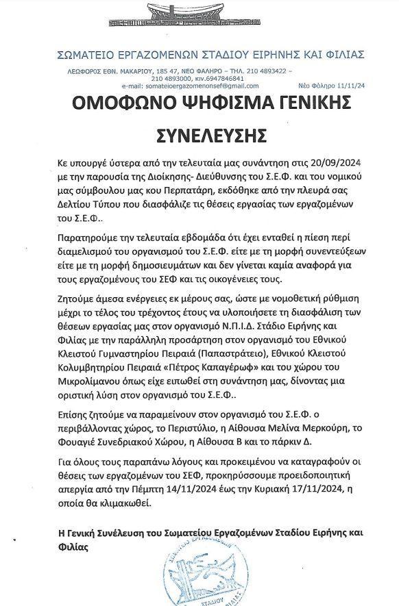Η ανακοίνωση των εργαζομένων του ΣΕΦ: