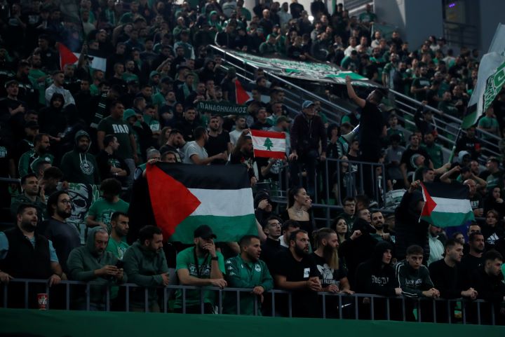 Με σημαίες της Παλαιστίνης και πανό υποδέχθηκαν τη Μακάμπι Τελ Αβίβ στο ΟΑΚΑ οι φίλοι του Παναθηναϊκού.
