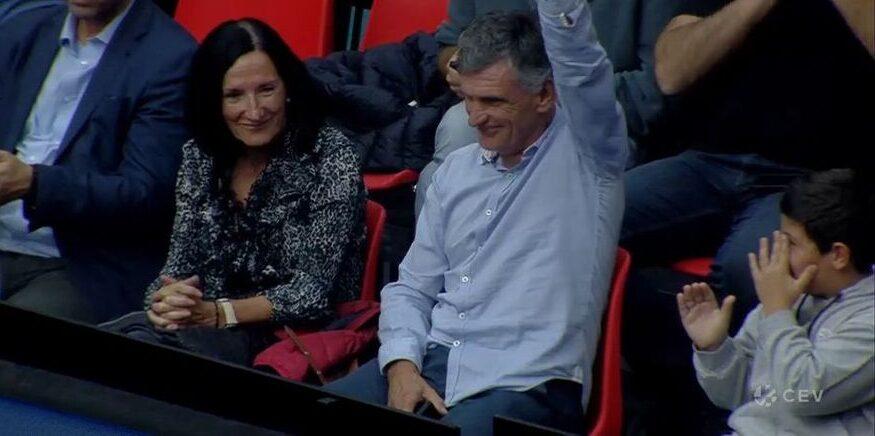 Ο Βάσκος τεχνικός του ποδοσφαιρικού τμήματος του Ολυμπιακού βρέθηκε για πρώτη φορά σε αγώνα βόλεϊ των Πειραιωτών, χάρηκε με την ψυχή του τη νίκη της ομάδας και χαιρέτησε τον κόσμο όταν αυτός τον αποθέωσε μαζικά στο σχεδόν κατάμεστο κλειστό «Μελίνα Μερκούρη» του Ρέντη.