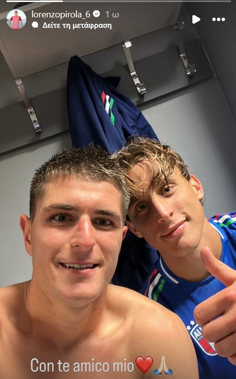Ο αμυντικός του Ολυμπιακού και συμπαίκτης του Μπόβε στις μικρές εθνικές ομάδες της Ιταλίας, Λορέντσο Πιρόλα, θέλησε να στείλει το δικό του μήνυμα συμπαράστασης στον καλό του φίλο δημοσιεύοντας μια κοινή τους φωτογραφία.