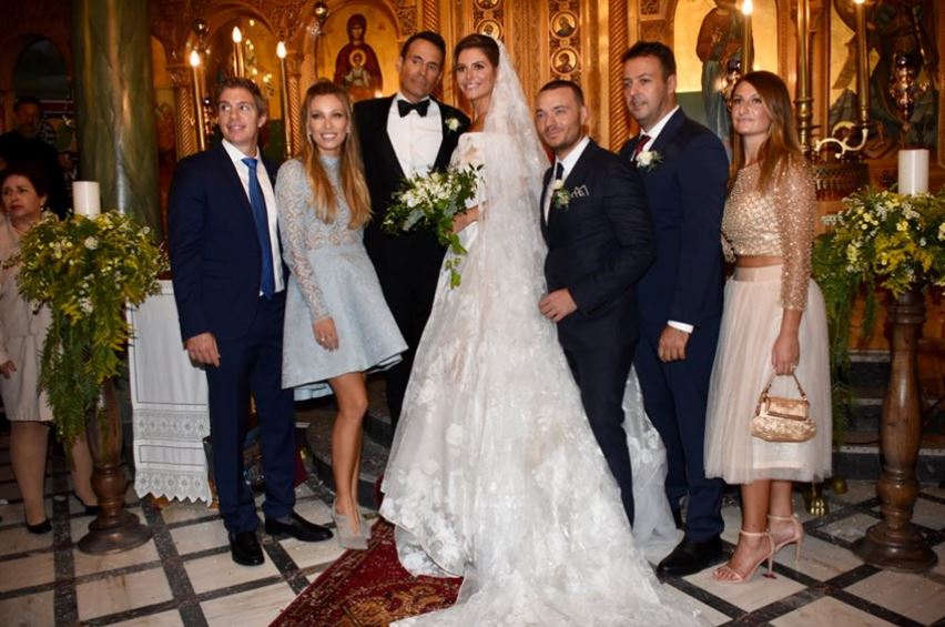 Στην εκκλησία προσφέρθηκαν στους καλεσμένους δίπλες, το παραδοσιακό γλυκό του γάμου στην Πελοπόννησο, μαζί με τις μπομπονιέρες.