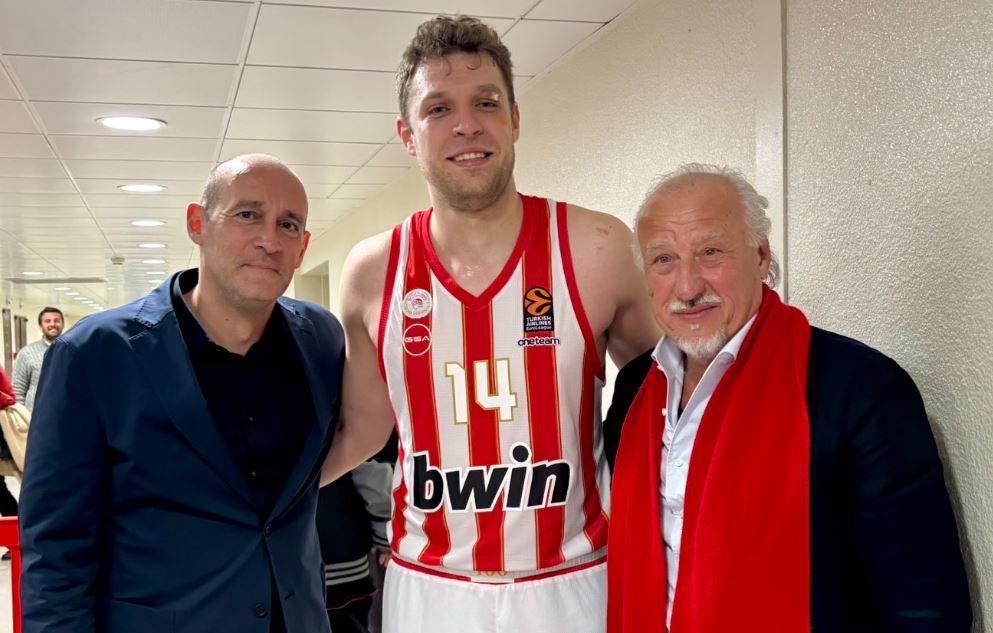 Πριν από το τζάμπολ, ο εκ των ιδιοκτητών της ΚΑΕ Ολυμπιακός είχε μια σύντομη συζήτηση με τον πρόεδρο της Μονακό, Αλεξέι Φεντορίτσεφ, ενώ μετά το τέλος του αγώνα οι δύο άνδρες μαζί με τον Σάσα Βεζένκοφ τράβηξαν μία αναμνηστική φωτογραφία.