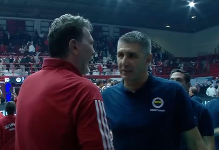 Για την ένταση στο πέμπτο σετ με την κόκκινη και την αποβολή του Πέριν: «Οι οπαδοί του Ολυμπιακού είναι καταπληκτικοί, γνώριζα τι ατμόσφαιρα θα συναντήσουμε. Ο διαιτητής στο πέμπτο σετ ήθελε να γίνει πρωταγωνιστής, ίσως επηρεάστηκε από την ατμόσφαιρα κι αυτό ήταν λάθος. Σταματούσε κάθε φάση. Είπα κατευθείαν στον supervisor ότι ο Πέριν δεν τσακώνεται με τον Τζίζγκα, γνωρίζονται, μη δίνετε κάρτα (σ.σ. την κόκκινη στον Πέριν). Από την κατάσταση ευνοηθήκαμε έτσι όπως πήγε γιατί δημιουργήθηκε εκνευρισμός, έτσι και πήραμε αυτή τη μεγάλη νίκη».