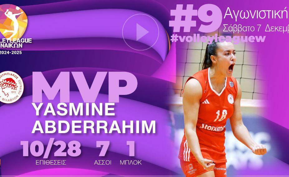 Η Αλγερινή ακραία του Ολυμπιακού Γιασμίν Αμπντεραχίμ είναι η MVP της 9ης αγωνιστικής στο πρωτάθλημα της Volley League γυναικών.