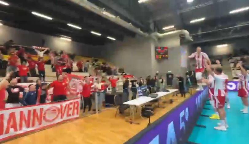 Φίλοι του Ολυμπιακού από το Ανόβερο και τις γύρω πόλεις ταξίδεψαν στο Χίλντεσχαϊμ και στήριξαν την προσπάθεια της ομάδας του Αντρέα Γκαρντίνι για νίκη στη Volksbank Arena απέναντι στην Γκίζεν για την 4η αγωνιστική του CEV Champions League.