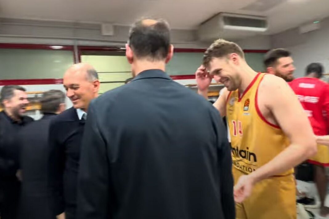 Στην παρακάμερα που δημοσίευσε η ερυθρόλευκη ΚΑΕ ξεχωρίζει η στιγμή με τον Γιώργο Αγγελόπουλο που βρέθηκε στα αποδυτήρια και έκανε «ζντο» με την ομάδα και τον Μπαρτζώκα, όπως και η αποθέωση στον Σάσα Βεζένκοφ από τους συμπαίκτες του που τού φώναζαν «παίκτης της χρονιάς».