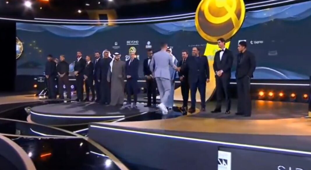Ο Κριστιάνο Ρονάλντο που μεταξύ άλλων πήρε το βραβείο του «καλύτερου παίκτη της Μέσης Ανατολής για το 2024», ανέβηκε στη σκηνή και έκανε χειραψία με όλους τους νικητές.