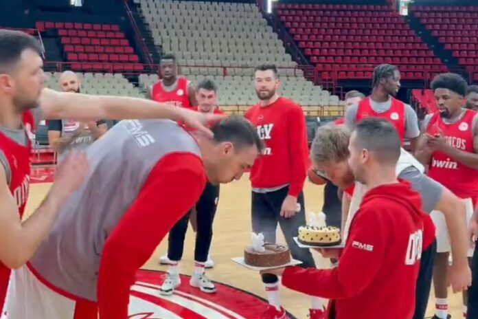 Στην προπόνηση της Τρίτης, παραμονή Πρωτοχρονιάς, η ερυθρόλευκη ΚΑΕ ετοίμασε τούρτα έκπληξη και στους δύο παίκτες, με τα χαμόγελα στο πρόσωπό τους και την αγάπη των συμπαικτών τους μέσω ευχών να τα λένε όλα για το οικογενειακό κλίμα που επικρατεί στους Πειραιώτες.