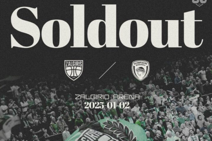 Ζαλγκίρις και Ολυμπιακός θα αναμετρηθούν στο πρώτο παιχνίδι του 2025 και θα το κάνουν μπροστά σε γεμάτες κερκίδες, αφού οι Λιθουανοί ανακοίνωσαν sold out για το παιχνίδι.