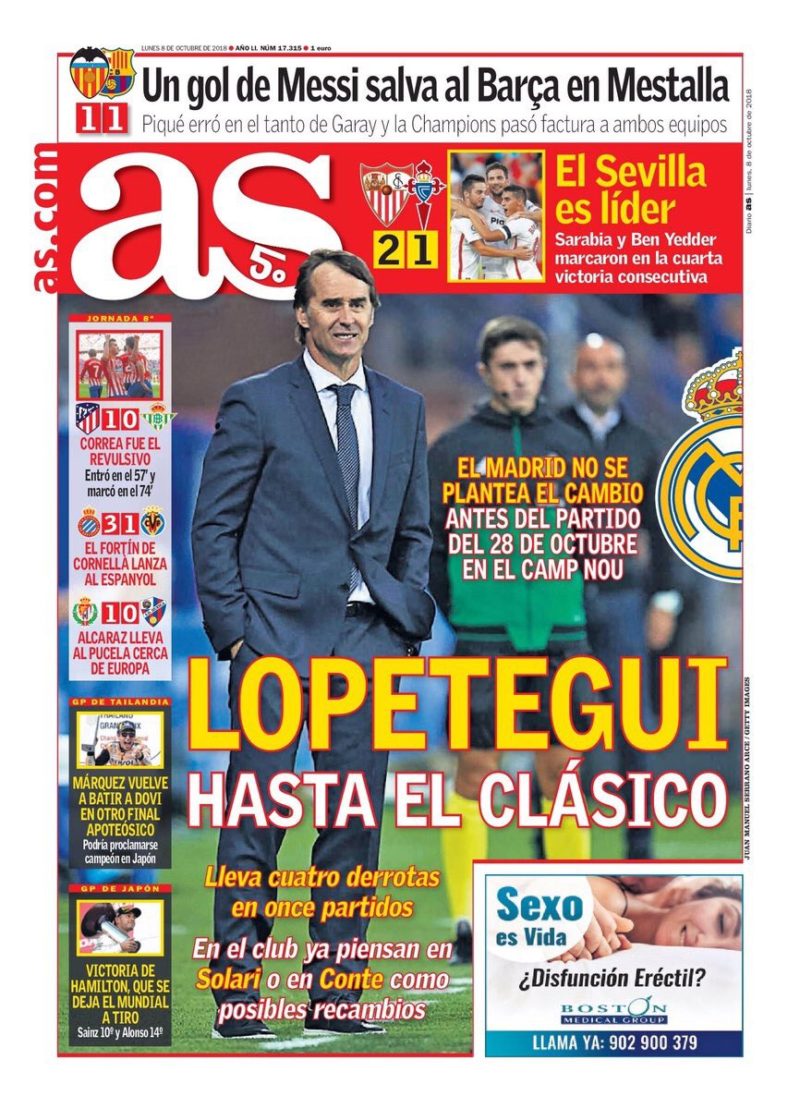 Η Ρεάλ Μαδρίτης για την ώρα δεν σκέφτεται την απόλυση του Λοπετέγκι σε περίπτωση νέου αρνητικού αποτελέσματος, σύμφωνα με όσα αναφέρει σε σημερινό της δημοσίευμα η εφημερίδα AS.