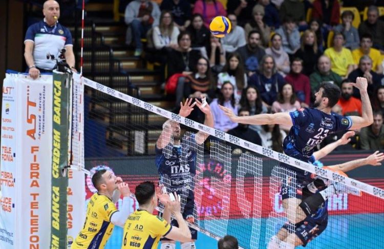 Με το σκορ στο 22-22 στο τρίτο, οι φιλοξενούμενοι έτρεξαν σερί 0-3 για να κάνουν το 1-2 ενώ στο τέταρτο η Μόντενα έσβησε τρία σετ μπολ αλλά όχι και τέταρτο, με τον Λάβια να κλείνει το ματς με άσο για να οδηγήσει την Τρεντίνο στο -5 από την πρωτοπόρο Περούτζια με παιχνίδι παραπάνω: MVP ο Ιταλός διεθνής ακραίος, εξαιρετικός ο Μπάρτα στο κέντρο και πολύ γεμάτη εμφάνιση ο Γκάμπι Γκαρσία ερχόμενος από τον πάγκο.