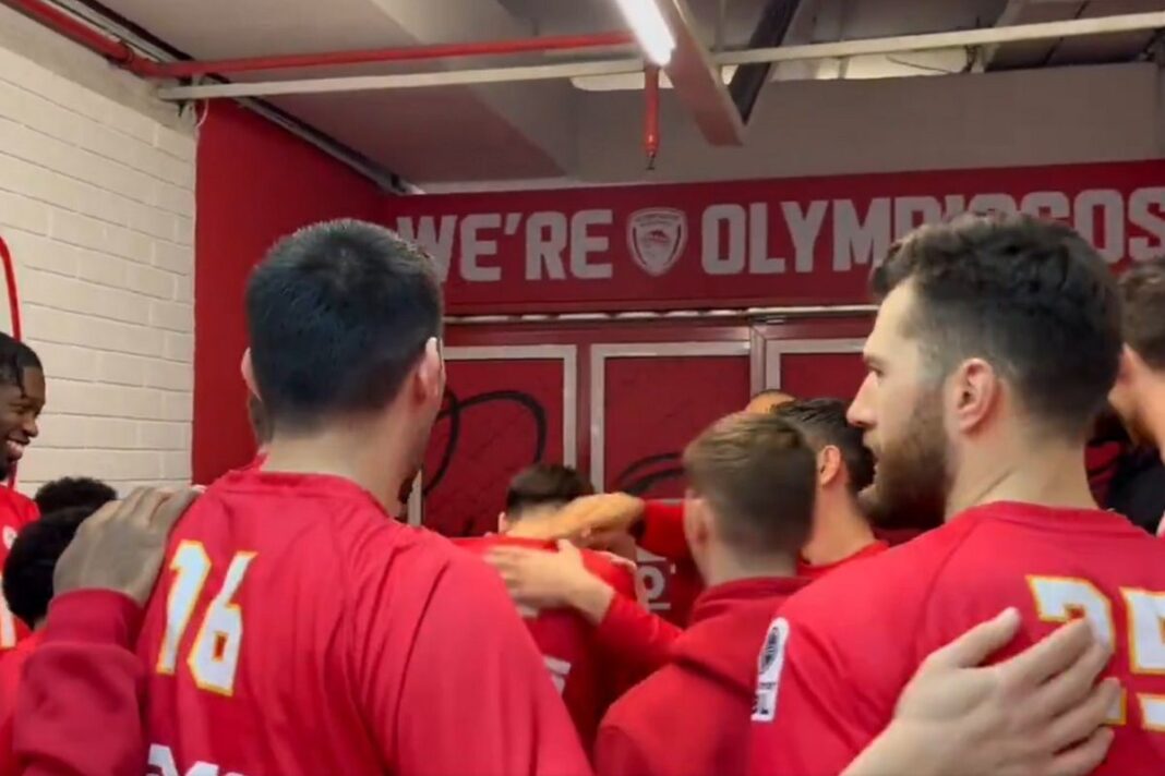 Αυτή είναι μία στιγμή που ο νεαρός άσος δεν θα ξεχάσει ποτέ και οι συμπαίκτες του φρόντισαν να τον κάνουν να νιώσει άνετα από την πρώτη στιγμή, με το μαζικό… φατούρο πριν την έναρξη του αγώνα στο ΣΕΦ.