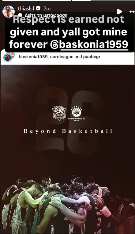 «Κάτι περισσότερο από μπάσκετ. Το παιχνίδι μας φέρνει κοντά, αλλά ο σεβασμός μας κρατάει ενωμένους», ήταν το μήνυμα με το οποίο συνόδευσε τη φωτογραφία που δημοσίευσε από το κέντρο στο παρκέ του ΟΑΚΑ η Μπασκόνια.