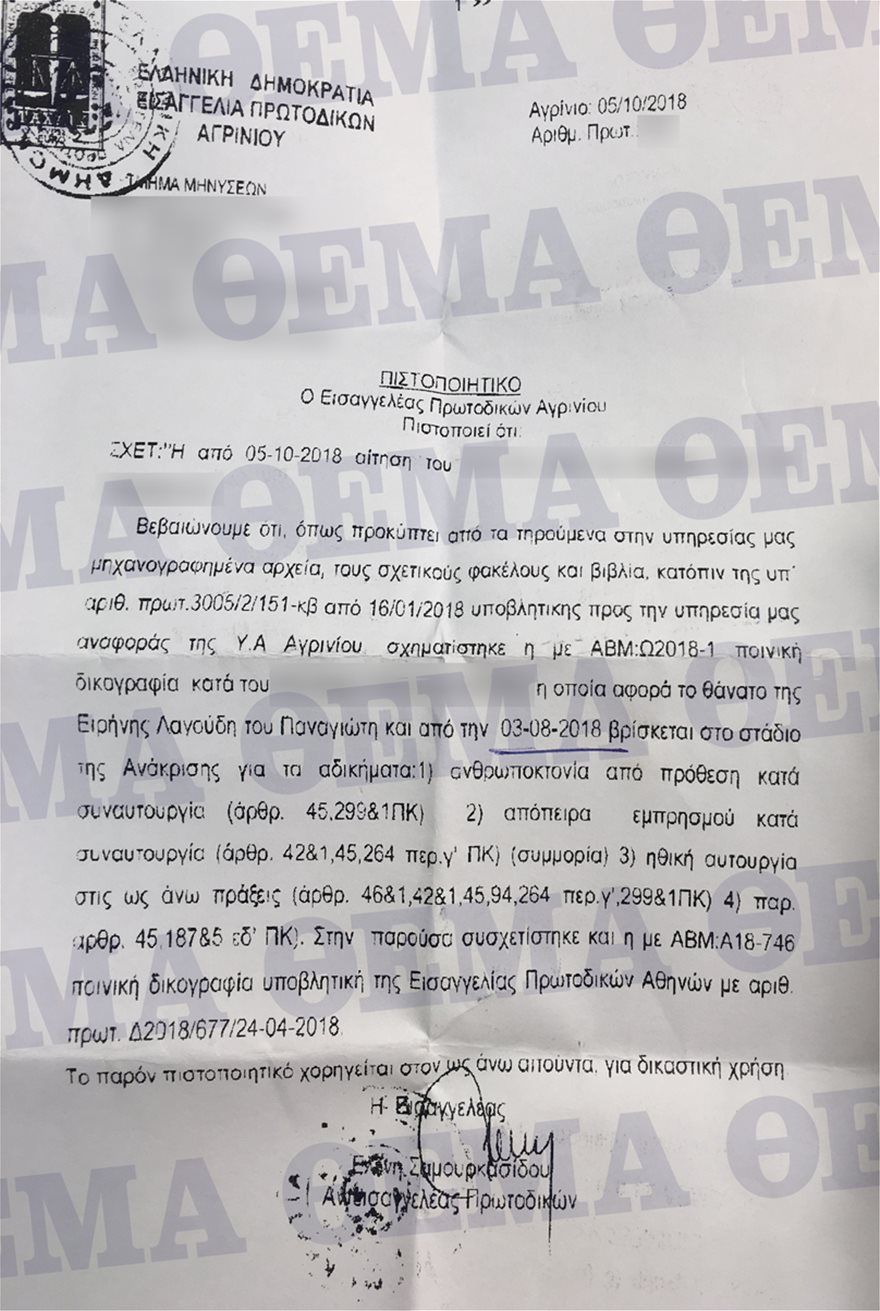 Ωστόσο, έγγραφο που έφερε στη δημοσιότητα η ιστοσελίδα protothema.gr, αποδεικνύει την εξελισσόμενη ποινική διαδικασία σε βάρος του συγκεκριμένου προσώπου.