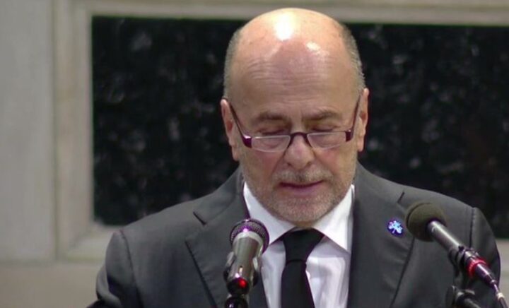 Ο ισχυρός άνδρας της ΠΑΕ Παναθηναϊκός, Γιάννης Αλαφούζος, ήταν μεταξύ εκείνων που εκφώνησαν τον επικήδειο για τον Μίμη Δομάζο και η συγκίνηση του ήταν φανερή.