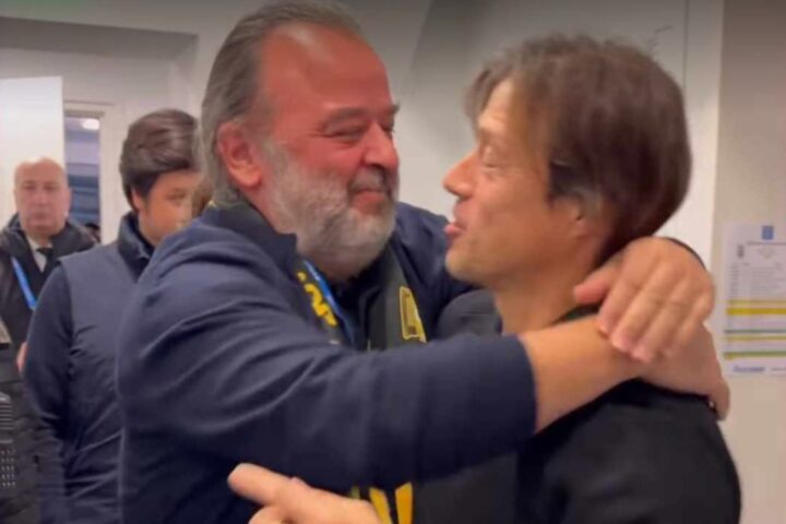 Όπως είναι λογικό το κλίμα στα αποδυτήρια της Ένωσης στην Τούμπα ήταν πανηγυρικό και εκεί βρέθηκε και ο ισχυρός άνδρας της ομάδας, Μάριος Ηλιόπουλος. Η χαρά του δεν κρυβόταν, καθώς μόλις μπήκε στα αποδυτήρια αγκάλιασε τον Ματίας Αλμέιδα και ξεκίνησε να χαιρετάει έναν έναν τους ποδοσφαιριστές με θερμό τρόπο.