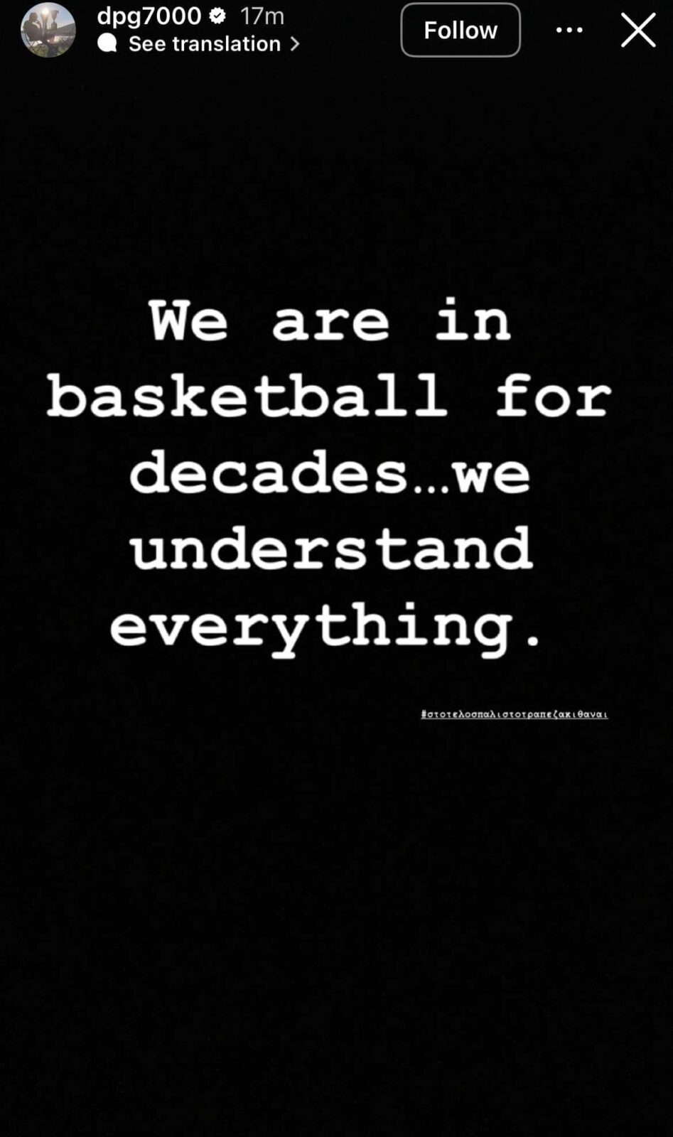 «Είμαστε στο μπάσκετ εδώ και δεκαετίες. Καταλαβαίνουμε τα πάντα. Στο τέλος πάλι στο τραπεζάκι θα είναι», έγραψε χαρακτηριστικά.