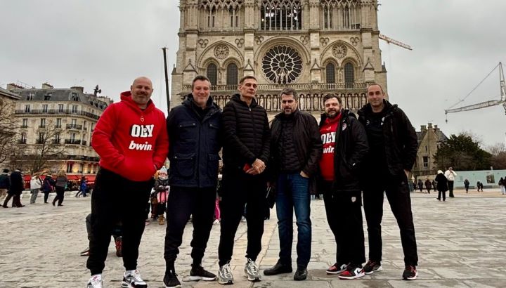Το ερυθρόλευκο τιμ, αποτελούμενο από τους Γιώργο Μπαρτζώκα, Γιώργο Μποζίκα, Στέφανο Τριαντάφυλλο και Γιάννη Καλαμπόκη, παρέα με τον γενικό Διευθυντή της ΚΑΕ, Νίκο Λεπενιώτη και τον Χρήστο Μπαφέ, πόζαραν μπροστά στη Notre Dame, πριν τη συνέχεια της διαβολοβδομάδας.