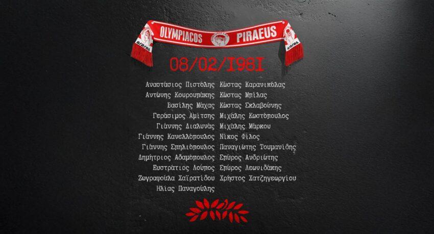 Για ολόκληρη την οικογένεια του Ολυμπιακού, η 8η Φεβρουαρίου είναι ημέρα μνήμης, ημέρα απόδοσης τιμών για εσάς που φύγατε τόσο άδικα από κοντά μας. Στις καρδιές μας, όμως, είστε εδώ, μαζί μας στα γήπεδα, δίπλα στη μεγάλη μας αγάπη! Όπως στον τελικό του Conference League, που σηκώσαμε το ευρωπαϊκό, που κάναμε πραγματικότητα το όνειρό «τρελό».
