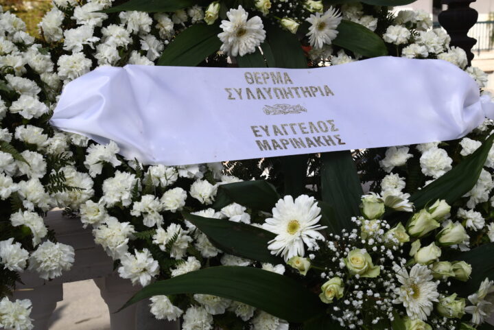 Από νωρίς, στην εκκλησία άρχισαν να εμφανίζονται φίλοι του «τριφυλλιού», αλλά και πρόσωπα από τον χώρο της πολιτικής, συμπεριλαμβανομένου και του πρώην πρωθυπουργού, Κώστα Καραμανλή. Επιπλέον, στεφάνια έστειλαν ο Γιώργος Βαρδινογιάννης, ο ιδιοκτήτης της «πράσινης» ΠΑΕ, Γιάννης Αλαφούζος, ο Βαγγέλης Μαρινάκης και ο Ολυμπιακός, ο Μάριος Ηλιόπουλος, αλλά και το προεδρείο της Superleague.