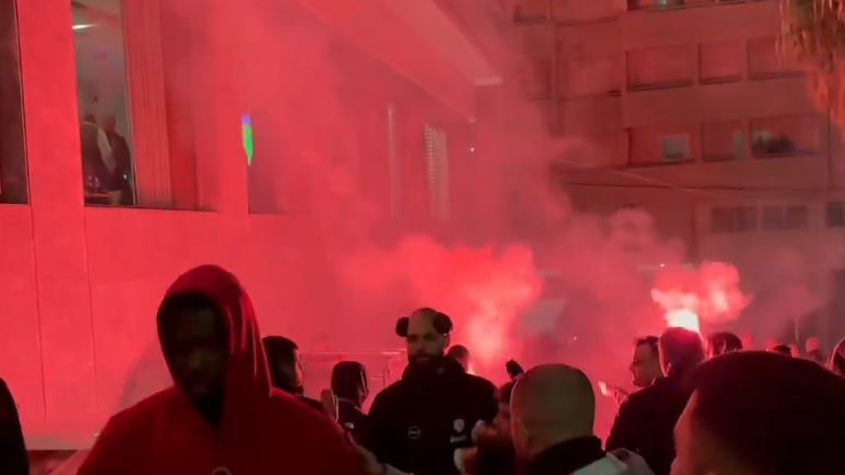 Στο πλευρό του Γιώργου Μπαρτζώκα και των παικτών του Ολυμπιακού βρέθηκαν αρκετοί φίλοι του συλλόγου έξω από το ξενοδοχείο όπου έχει καταλύσει η αποστολή στο Ηράκλειο.