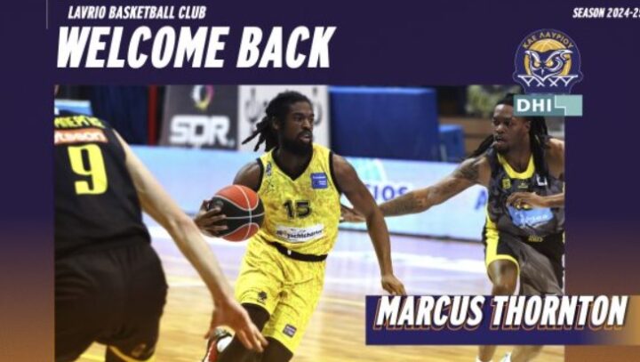 «Η ΚΑΕ Λαυρίου DHI ανακοινώνει τη συμφωνία της με τον αθλητή Marcus Alexander Thornton για την επιστροφή του στην ομάδα, για το υπόλοιπο της αγωνιστικής περιόδου 2024-2025.