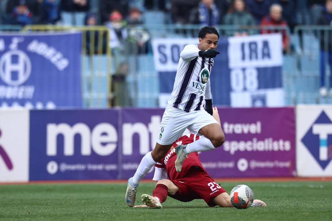 Ο Γηραιός προηγήθηκε στο 6′ με τον Μιράντα μετά από διπλή προσπάθεια και κεφαλιά αλλά οι Βυσσινί απάντησαν γρήγορα με πλασέ του Μωραϊτη για το 1-1, που ήταν και το αποτέλεσμα του πρώτου 45λεπτου.
