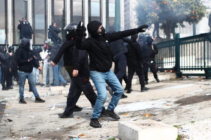 Κουκουλοφόροι βγήκαν μέσα από την πορεία για τα Τέμπη και πέταξαν πέτρες και βεγγαλικά προς τις δυνάμεις της ΕΛ.ΑΣ. Πολίτες που συμμετείχαν στην πορεία αποδοκίμασαν τους κουκουλοφόρους που προκάλεσαν τα επεισόδια.